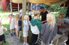 Fritidshjemmet har en fantastisk legeplads og fri adgang til skoven, og vores børn er dygtige til at bruge omgivelserne og sig selv.
